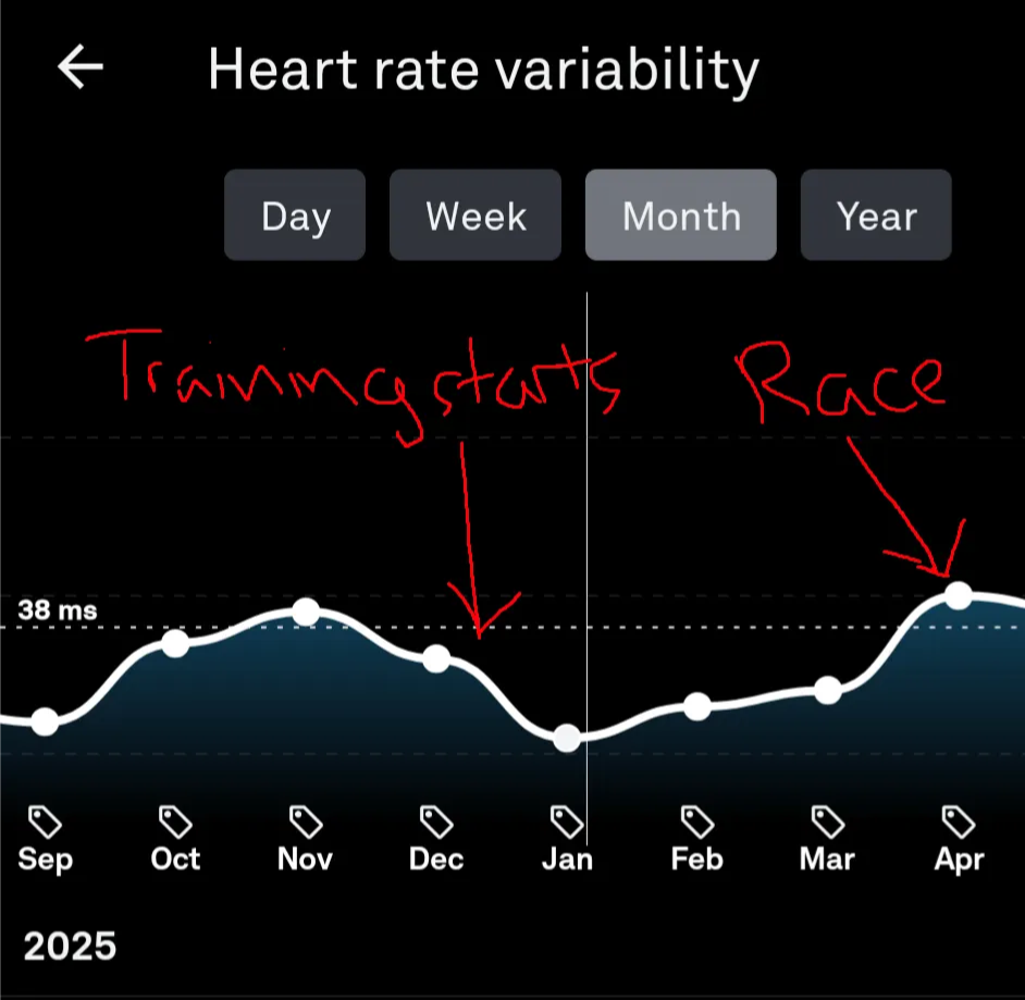 The month I trained too hard for my Half-Marathon was also the month with my lowest HRV in 2025.